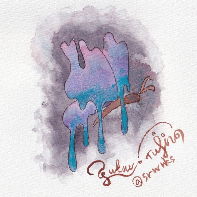 イチマツさんのタグ企画 #一次創作絵師拡散フェス03 に参加します。 絵柄とサインの一貫性のなさには自信があります 1.溶蝶 -YOCHO- 予兆(水彩) 2.蝶々蝶々々蝶々々々蝶々々々々(水彩) 3.みみみっつ(万年筆) 4.落ちた空(油彩)