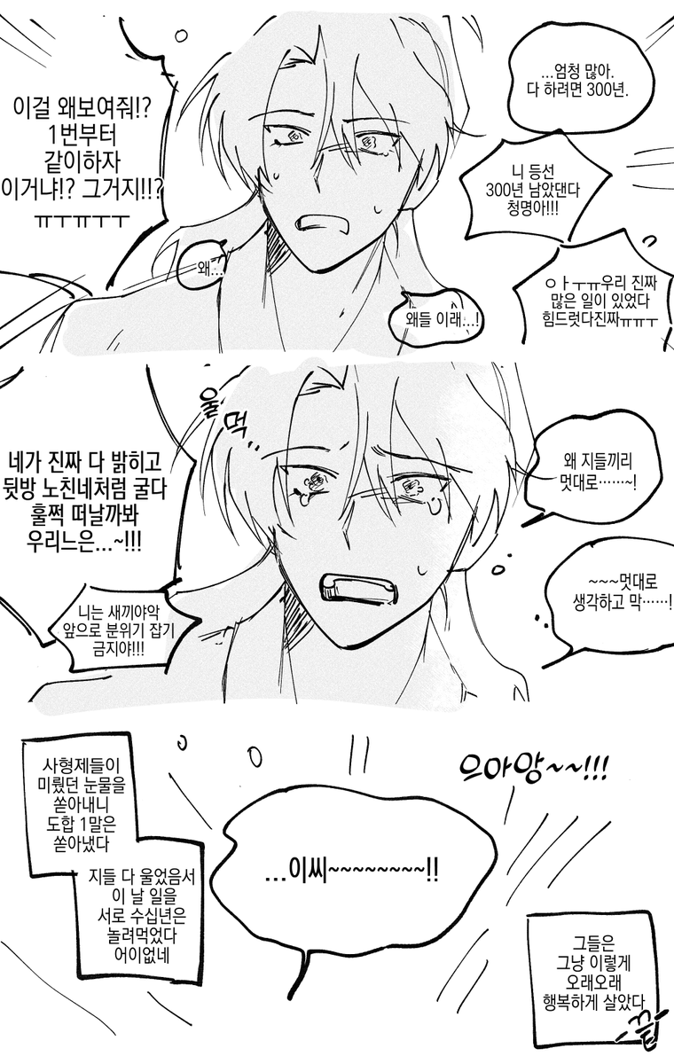 10.3K 11.5K 화귀 엔딩 상상하다 혼자 슬퍼져서 그린 러프들 올려봅니다 (ㅋㅋ ㅠㅠ 하,,,캐붕잔치인거 아는데 4바닥이나 그린게 아까워서... 22/09/10 20:40