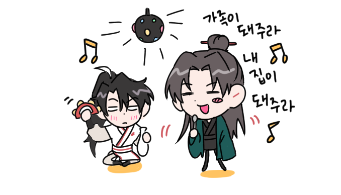 오늘의 혼못죽 그림(ㅋㅋ) 오프레로,,, 당소소 본체 아이돌이라 신곡 나오면 어쩌구댄스챌린지 릴스 돌아가면서 같이 찍어주는 화산귀환팀 다음 타자는 진금룡 배우라네요 . . . 짱ㅈㅅ 근데 최애 재롱 참을 수 X ...ㅋ