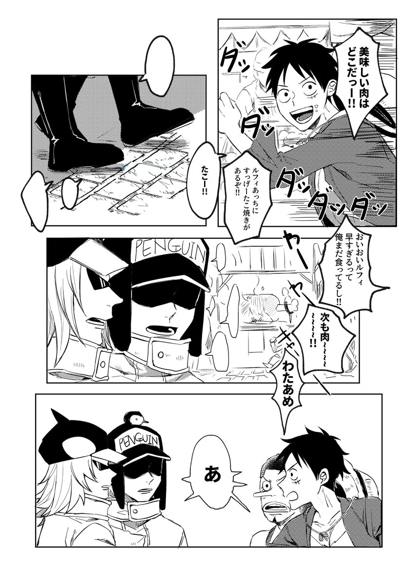 5/4スパコミ新刊サンプル① A5/34p/400円予定 ※モブが出ます(出番は少ない) 島に向かう途中、👿の実の能力者のせいで眠ってしまい夢の中で❤️ に会ってる🐯と、目を覚さない🐯が心配な👒が彼を呼び戻す話。 以外サンプル続きます↓