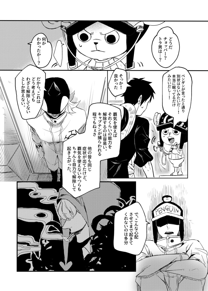 38 420 5/4スパコミ新刊サンプル① A5/34p/400円予定 ※モブが出ます(出番は少ない) 島に向かう途中、👿の実の能力者のせいで眠ってしまい夢の中で❤️ に会ってる🐯と、目を覚さない🐯が心配な👒が彼を呼び戻す話。 以外サンプル続きます↓ 23/04/17 21:49