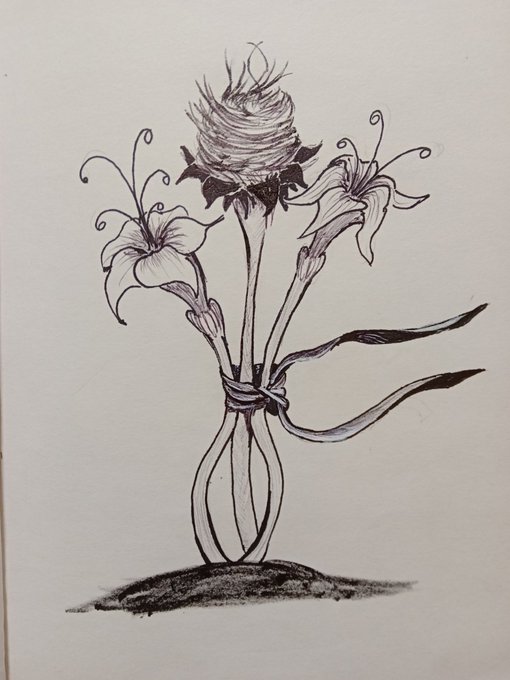 Day 10: Flower and Old ribbon. A little reminder about yourself #WitchyCafeScribbles #cglabtober #inktober #inktober2021 #ArtistOnTwitter #арт #рисунок