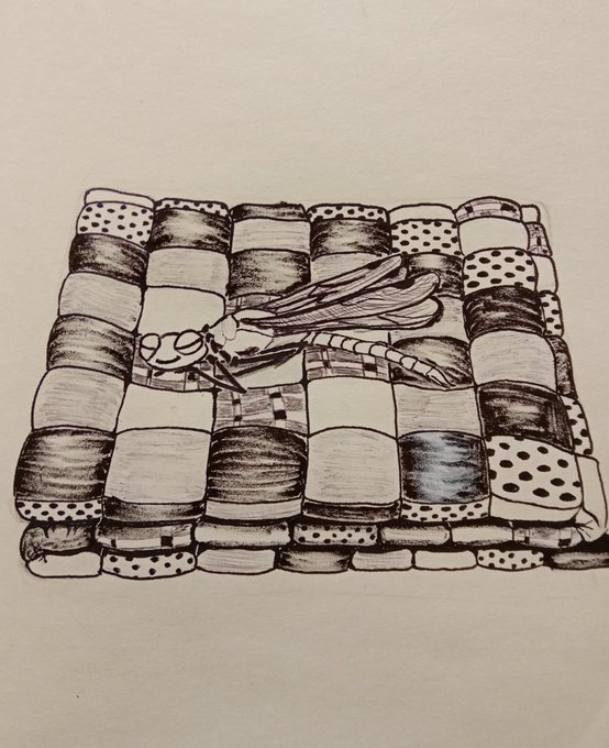 Day 11: Insect and Quilt. It seems they have a guest #WitchyCafeScribbles #cglabtober #inktober #inktober2021 #ArtistOnTwitter #арт #рисунок