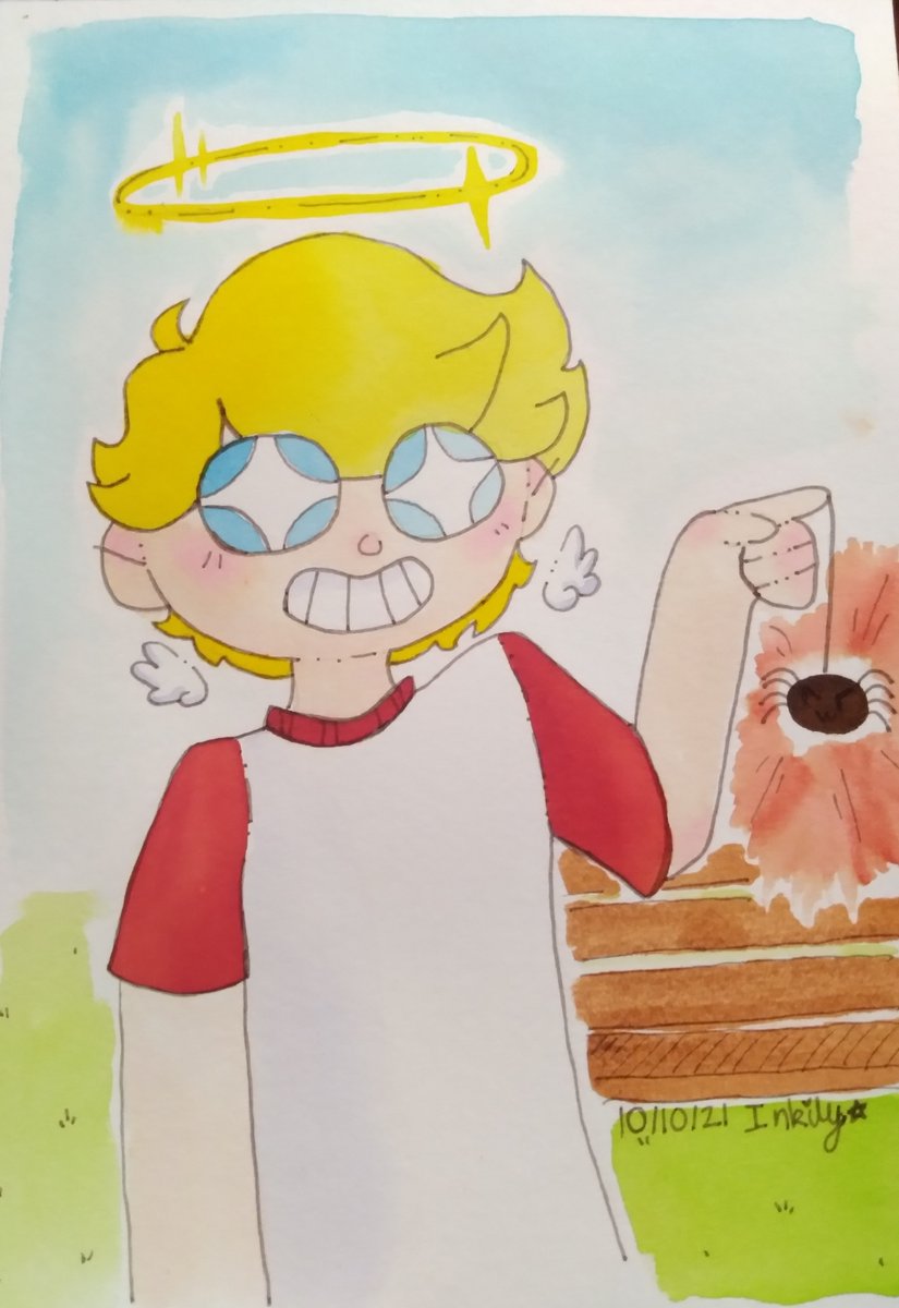I think this was my hardest theme so far! I wish I had recalled Ghostinnit was a thing before doing the whole thing. Shroud the spider looks like he's up to something... Themes include @tommyinnit, angelic and spooky. #cutetober #tommyinnitfanart #art
