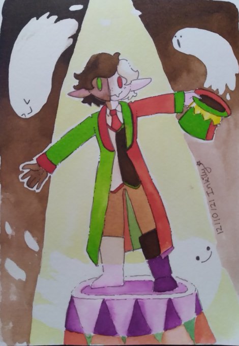 Now THIS ONE took a LOOOOONG time! I have to let the ink dry between sections of the artwork to prevent bleeding. Here we have @Ranboosaysstuff who is part of a circus and has ghosts! #Cutetober #ranboofanart #art