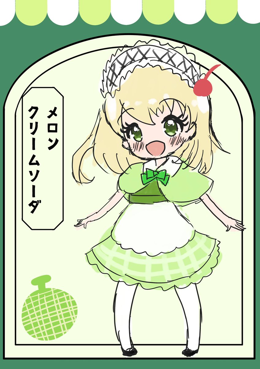 『メロンクリームソーダちゃん』🍈 #イラスト #創作 #一次創作 #クリームソーダ #レトロ #絵描きさんと繋がりたい #イラスト好きさんと繋がりたい #私の絵柄が好みって人にフォローされたい