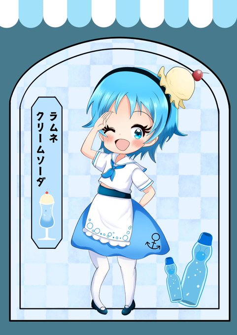 『ラムネクリームソーダちゃん🍬』 #イラスト #創作 #一次創作 #クリームソーダ #レトロ #絵描きさんと繋がりたい #イラスト好きさんと繋がりたい #私の絵柄が好みって人にフォローされたい