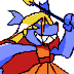 inktober day 11: villain (112x112, 12 colors) finally burning out, but i at least beat my record from when i originally tried doing this challenge; i'll see how more of these i got in me but for now i will rest #pixelart #inktober #killlakill