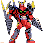 inktober day 10: robot (104x104, 11 colors) scuffed af but i've run out of energy for the night and i spent a few hours more on this than i intended to whoops #pixelart #inktober #gurrenlagann