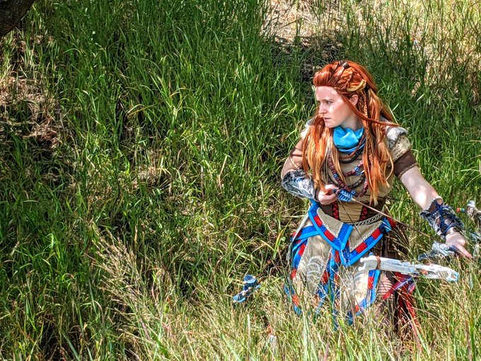 The hunter wandering the wilds. 🏹 . . . . . . #cosplay #cosplaying #cosplaylife #cosplayer #cosplayers #cosplaygirl #cosplaygirls #costumes #sewing #sew #aloy #aloycosplay #horizonzerodawn #horizonzerodawncosplay #archery #archer #bowandarrow #hunter #wild #forbiddenwest