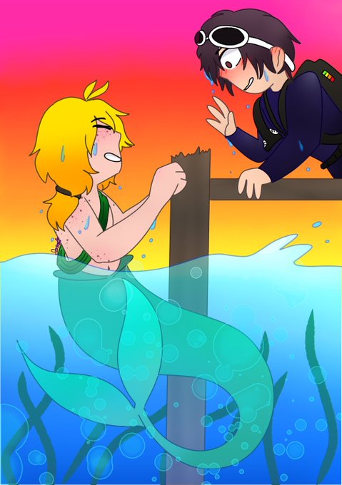 "Fish out of water" [Dnf Mermaid Dream and Scuba diver George] I was inspired by @kirwastaken amazing Mer-Dream Art and I wanted to draw Mer-Dream as well ^^ Hope y'all like it 🥺✨🌸 #dreamfanart #georgenotfoundfanart #dreamnotfound #dreamnotfoundfanart #DNF #dnffanart