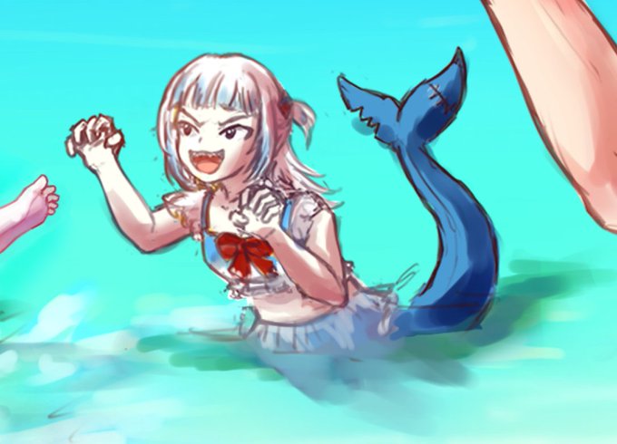 Shark in the water! Lots of progress on Gawr Gura with today's stream! Looks much more like her now c: Still need to clean up her bow and lace a bit, but I'm happy with the direction so far! #gawrt #SharkWeek