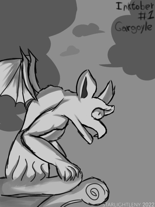 #Inktober2022, day 1: Gargoyle ————————— Si, llegué un poco tarde pero mejor tarde que nunca, acá está el primer dibujo.