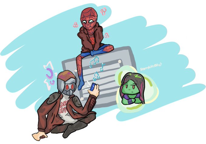Peters jammin 🎶 #SpiderMan #Starlord #inktober2020