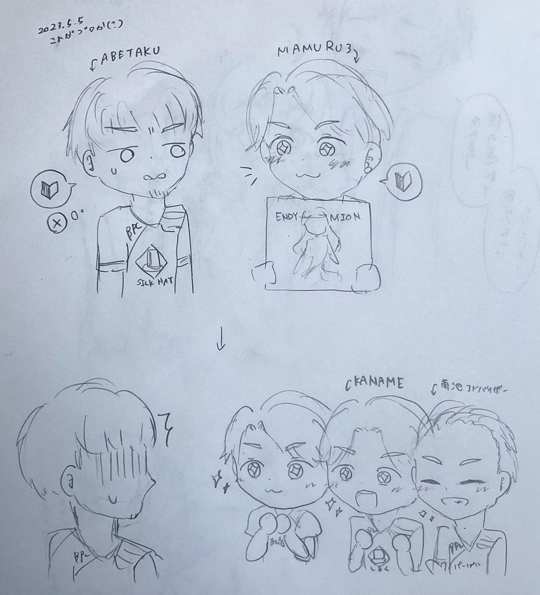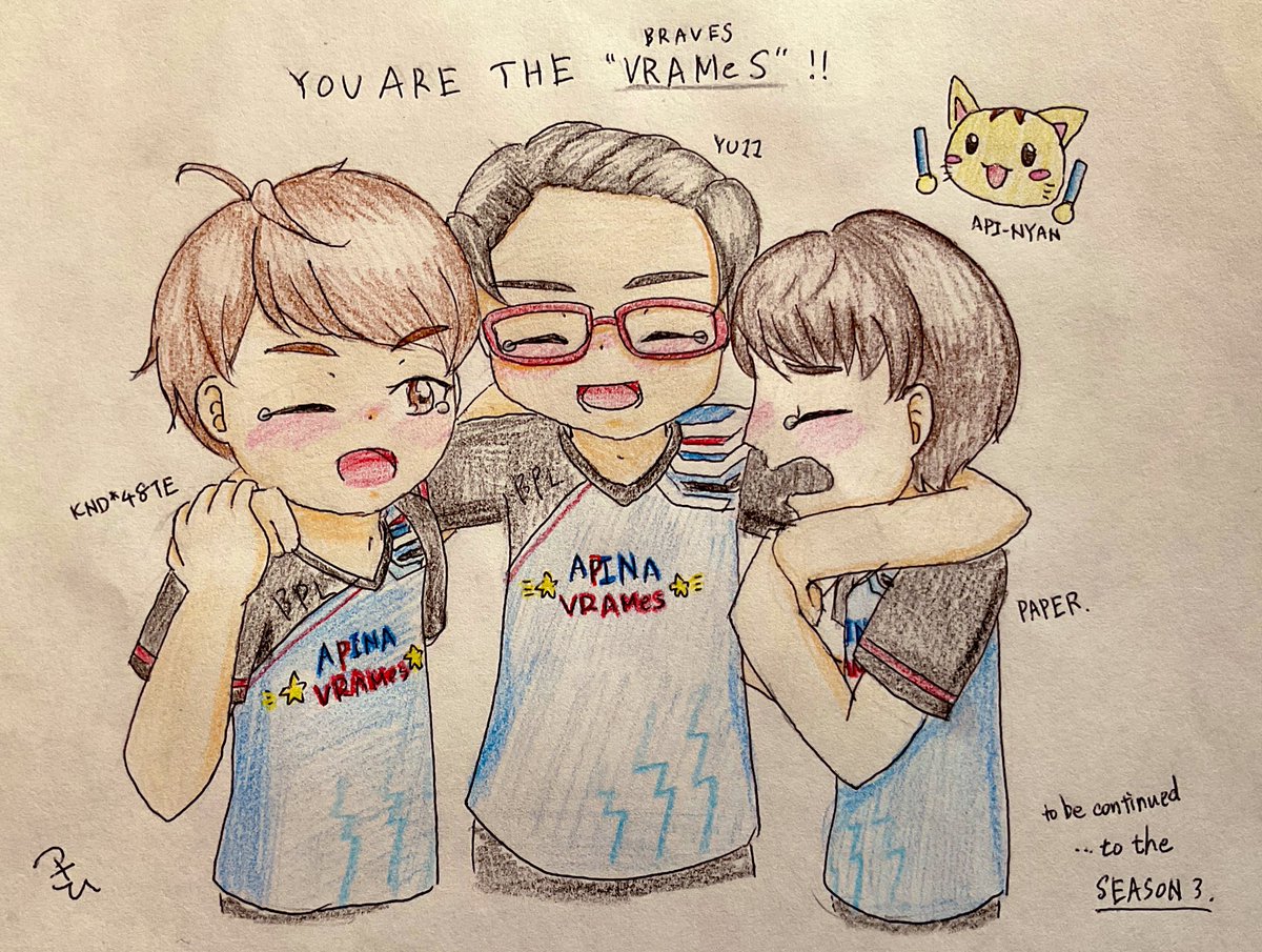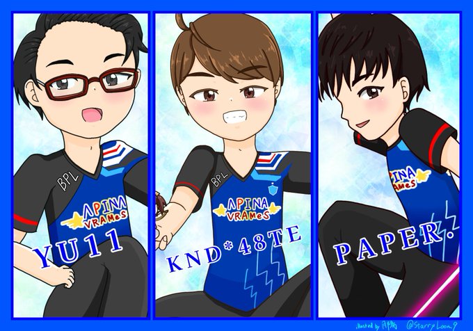 配信中の落書きで失礼します… #APINA_VRAMeS お疲れ様でした!! 来シーズンこそ優勝いくぞー!!!!!🌟🌟🌟 #BPLS2 #BPL絵 (1人だけ間隔空きすぎなのは単なるミスなので気にしないでいただきたく…)