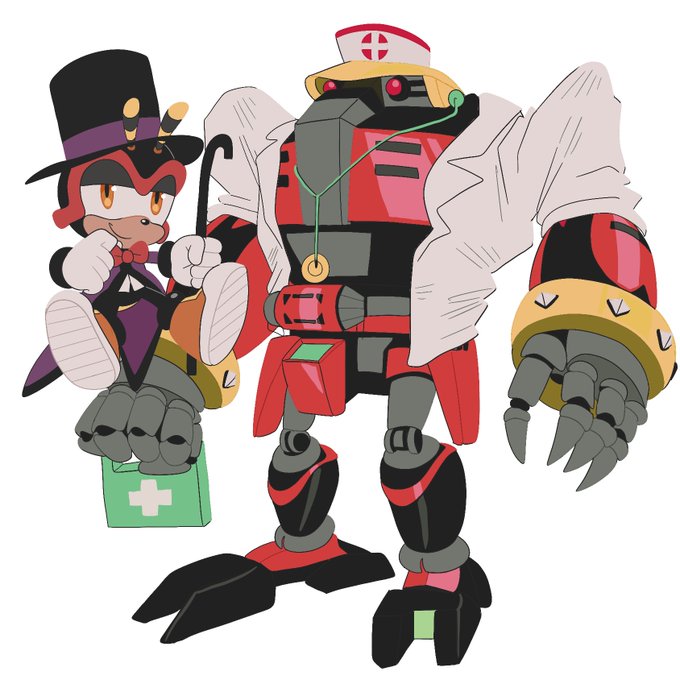 If they were on the train! Charmy the circus ringmaster and Omega the nurse #SonicTheHedgehog #sonicfanart #themurderofsonicthehedgehog #murderofsonicthehedgehog