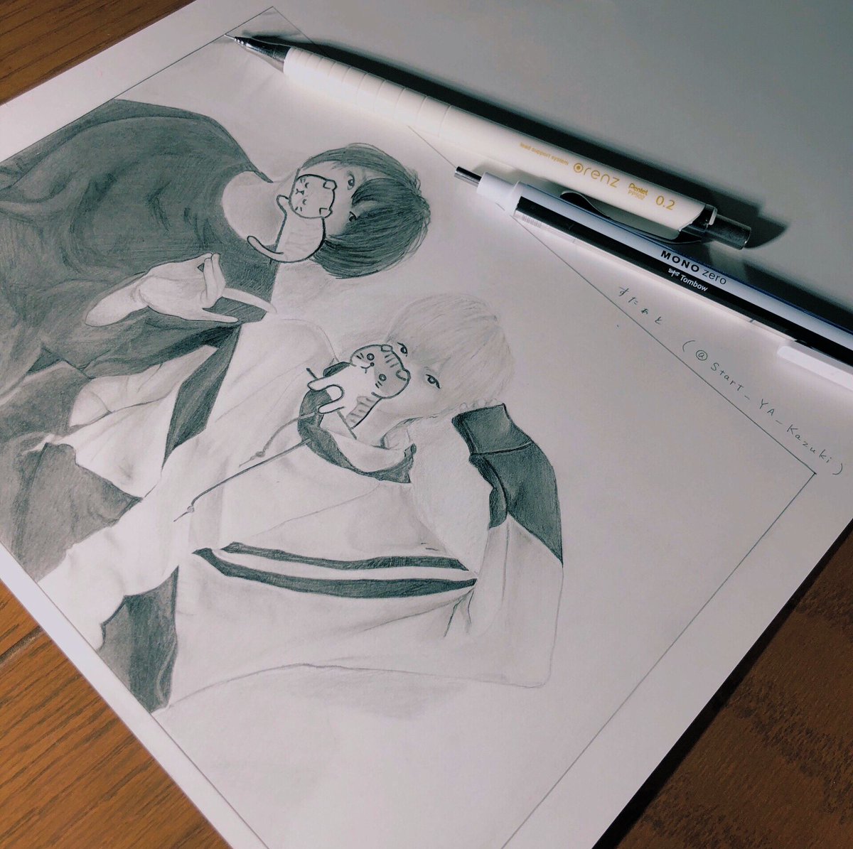 9 57 シャーペンでAfter the Rainのおふたりを描かせていただきました。 #まふあーと #そらるの絵 22/01/25 19:31