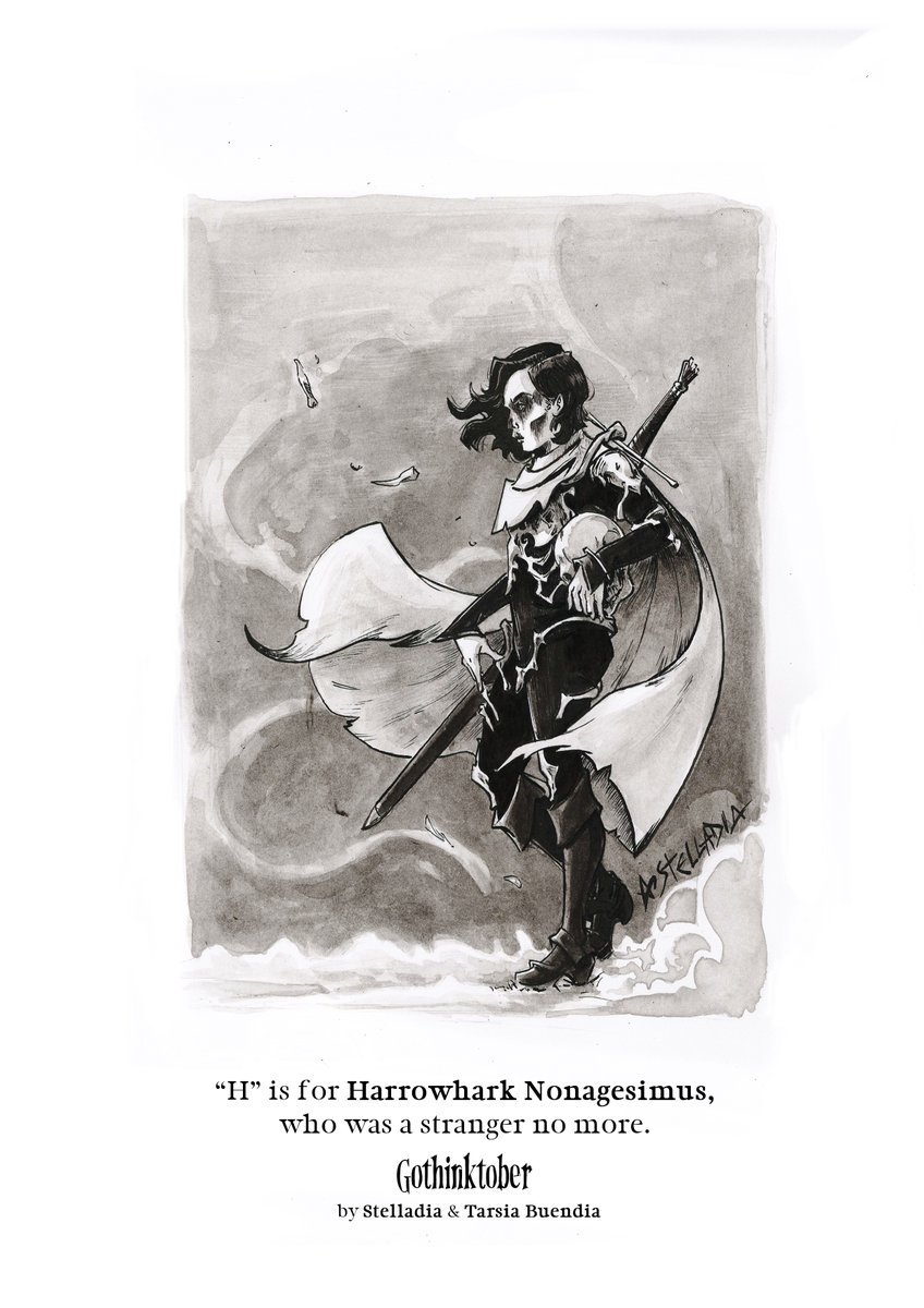 Gothinktober Day 9: “H” is for Harrow the Ninth. Art by me, words by @TarsiaBuendia . Original soon for sale! 🖤 #gothinktober #inktober #gothic #edwardgorey #harrow #harrowtheninth #GideonTheNinth #TheLockedTomb #tamsynmuir