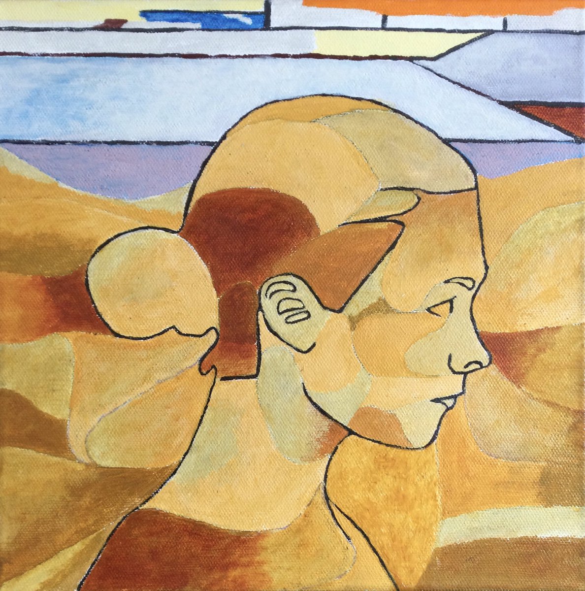 “Portrait of an unknown woman” acrylic paint on paper 8” x 8”
