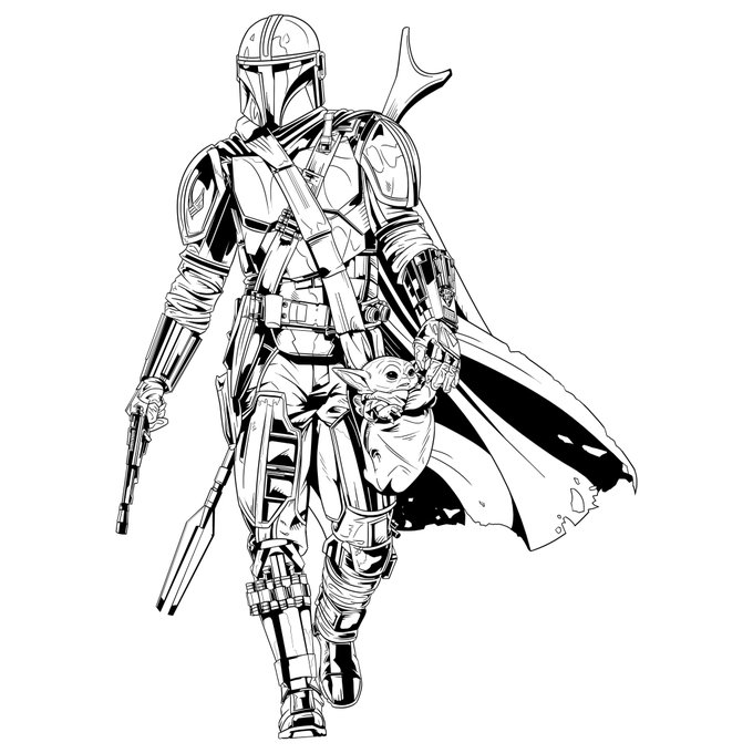 Inktober Day 30 - Din Djarin and the Child #DinDjarin #StarWars #TheMandalorian #TheChild #BabyYoda #ThisIsTheWay #Inktober #Inktober2020