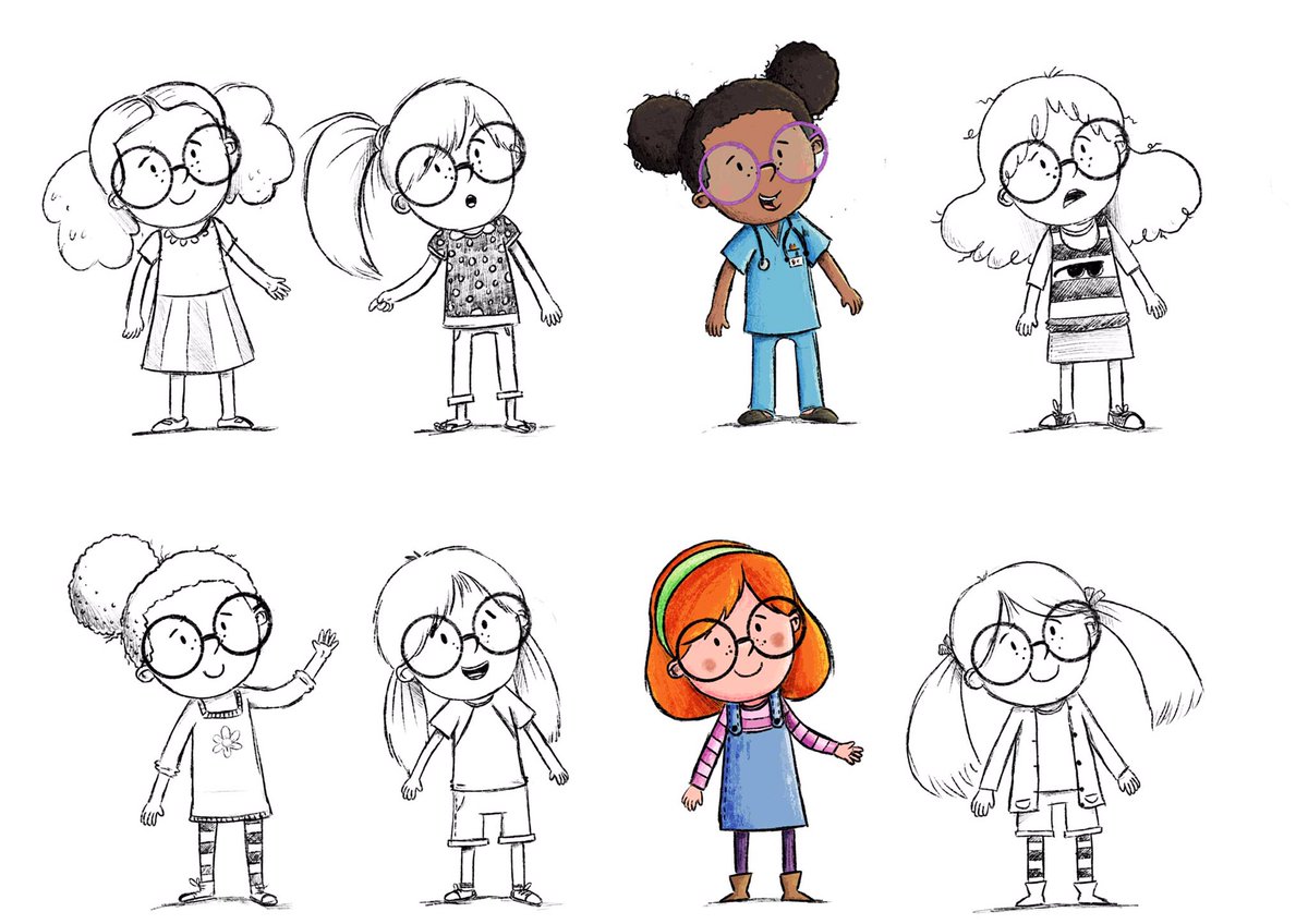 Some girl character designs I did and a couple of sample spreads for a book I didn’t get a while back..found these the other day,had forgotten about them, but still love this girl character.#characterdesign #childrensbook #publisher #Illustrations #illustrationart #kidlit