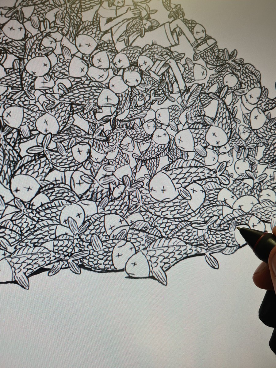 Roughing out a book and I DONT WANT TO DRAW ANYMORE BLOODY FISH !!! #WIP #ChildrensBooks #kidlit #kidlitart #illustration #Illustrator