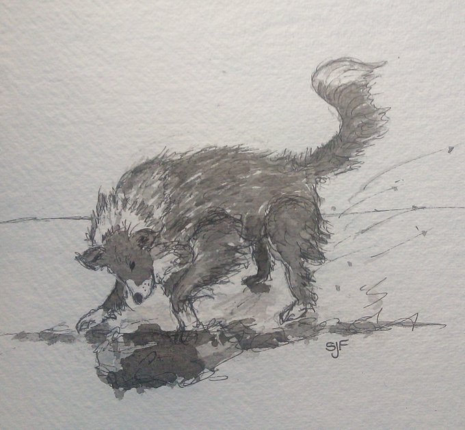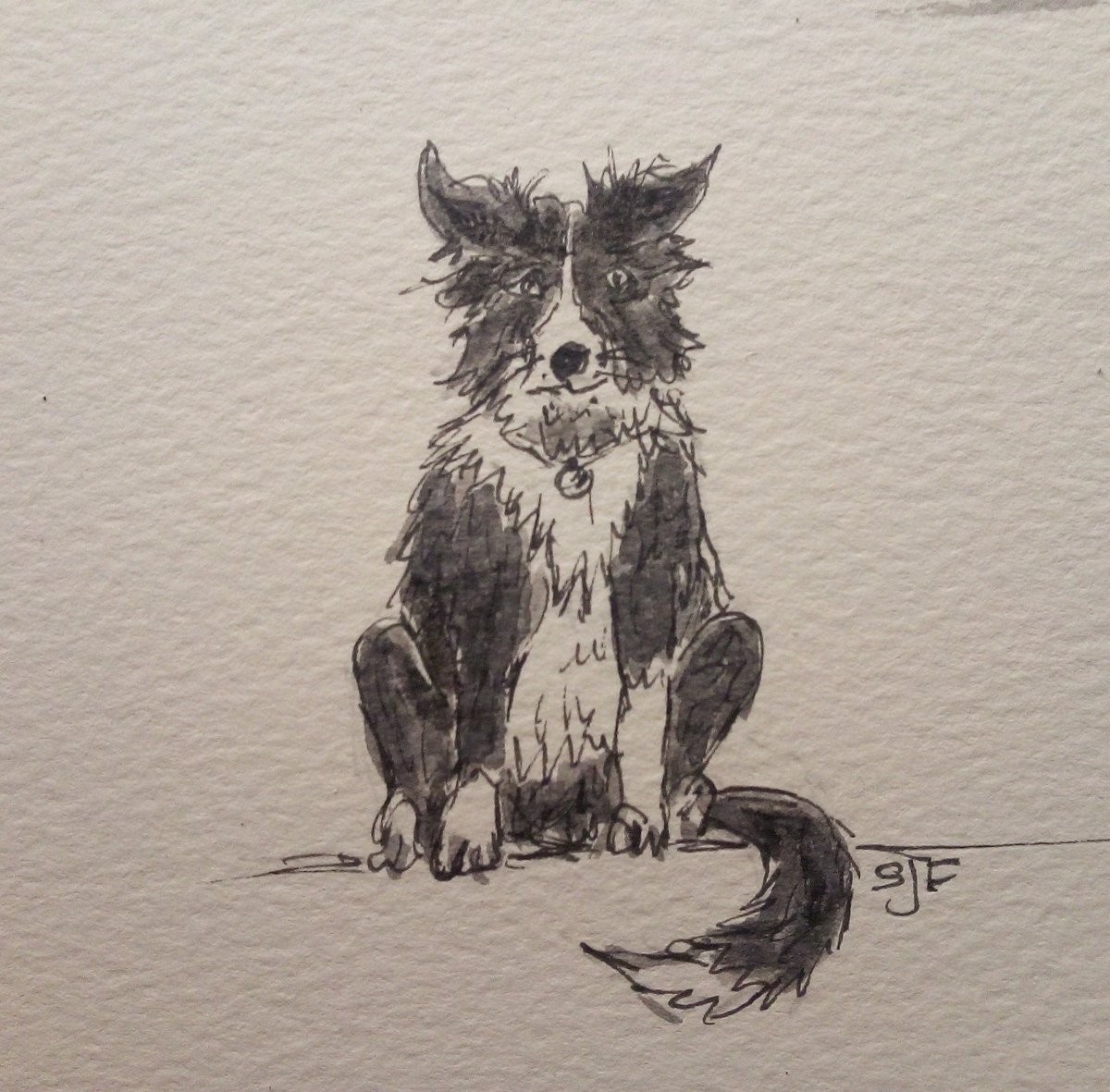 For day 2 of #inktober2022 #scurry Reb my #bordercollie is confused by the squirrels scurrying around #Inktober