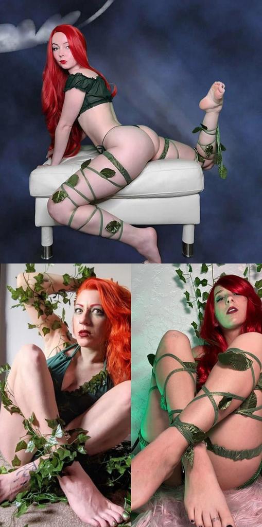 Three Poison Ivy cosplay and it's Batman only true weakness 😉 @PixieNixx_ @thecosmicgodess @TinyFeetTreat #cosplayergirl #Batman #comics #cosplay #shoutout #footfetısh #footbabe #weakness #poisonivycosplay