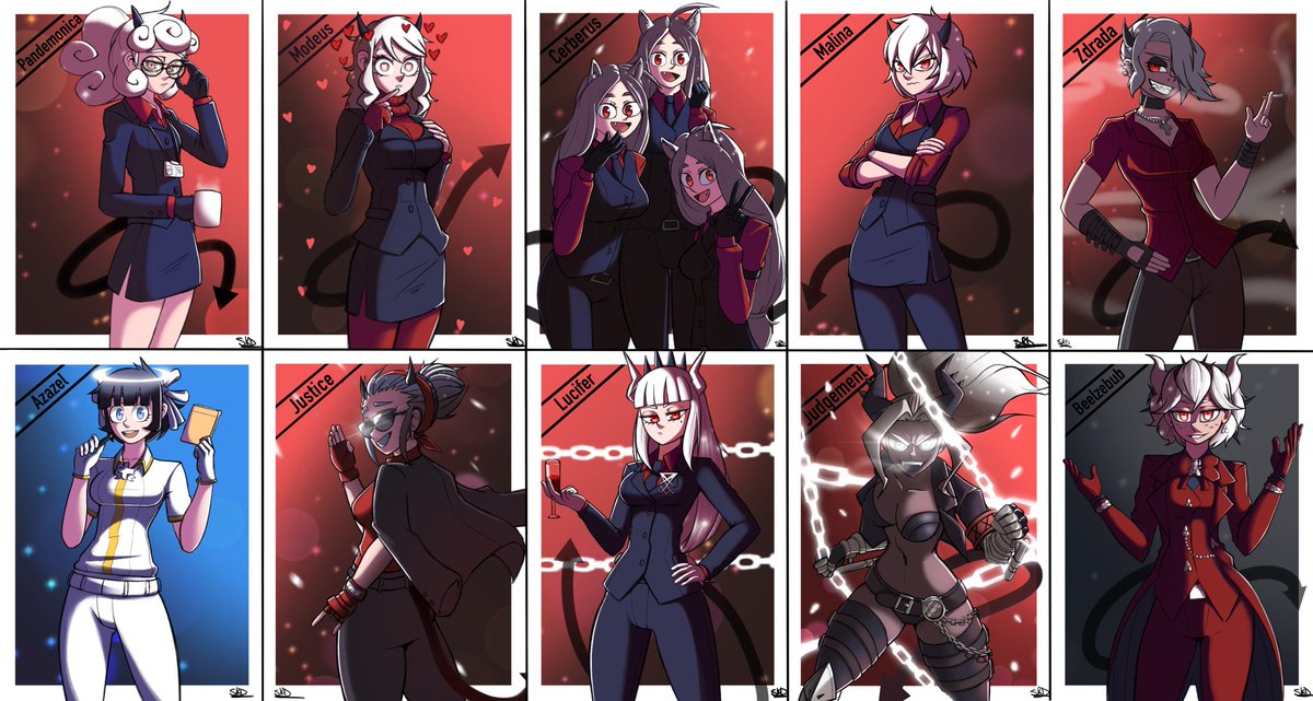Aaaaand there we go, all the Helltaker girls combined into one collage, made some changes that I thought would look better too. Who’s your favorite Helltaker girl? All characters made by @vanripperart #Helltaker #Helltakerfanart