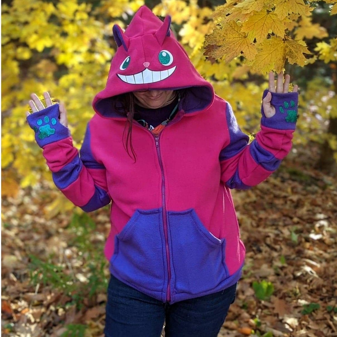 Finished my hoodie! And it has pawpads 🐾 From the woman's cosplay hoodie pattern by @CholyKnight found on Etsy #HandmadeByMe #Sewing #cricut #cheshirecat #kitty #catgirl #cosplay