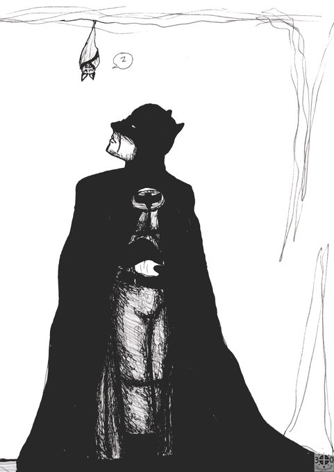 Inktober 2022 - Day 3 Bat Went through a few sketches of bats, but decided to go with Batman seeing a bat in the cave. Couldn't really think of anything else to draw for the word, "bat". Batman - DC Comics #Inktober #inktober2022