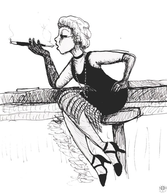 Inktober 2022 - Day 5 Flame "There she was. Sitting in such a way to show she did not have a care in the world... or your opinion. The lady of the evening. The glamour among glamours. The temptation with lips of poison ...My old flame." #Inktober #inktober2022