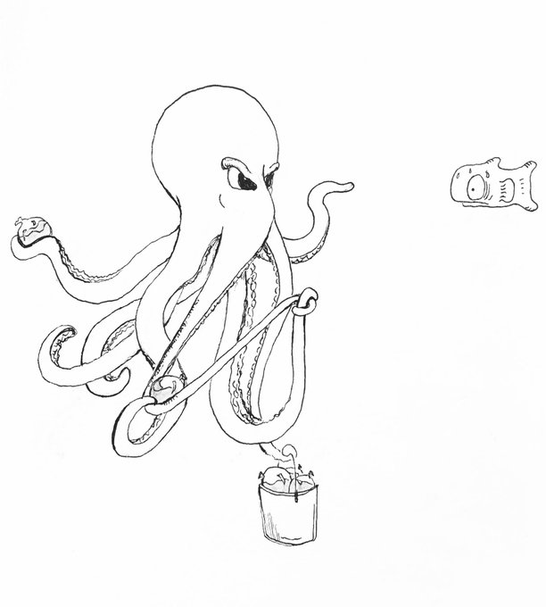 Had another idea for sling I wanted to try... || #inktober • • • #inktober2019 #art #artist #artwork #sling #ocean #octopus #cartoon #illustration #drawing #characterdesign #twitch
