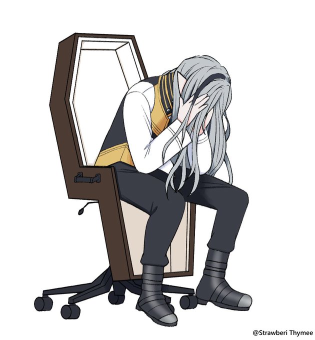 Grandpa Vespie in the coffin chair 💀💀 (feel free to use this as a reaction pic/meme I guess?) #VespART #Noirgrounds twitter.com/RBC_Shiio/stat…