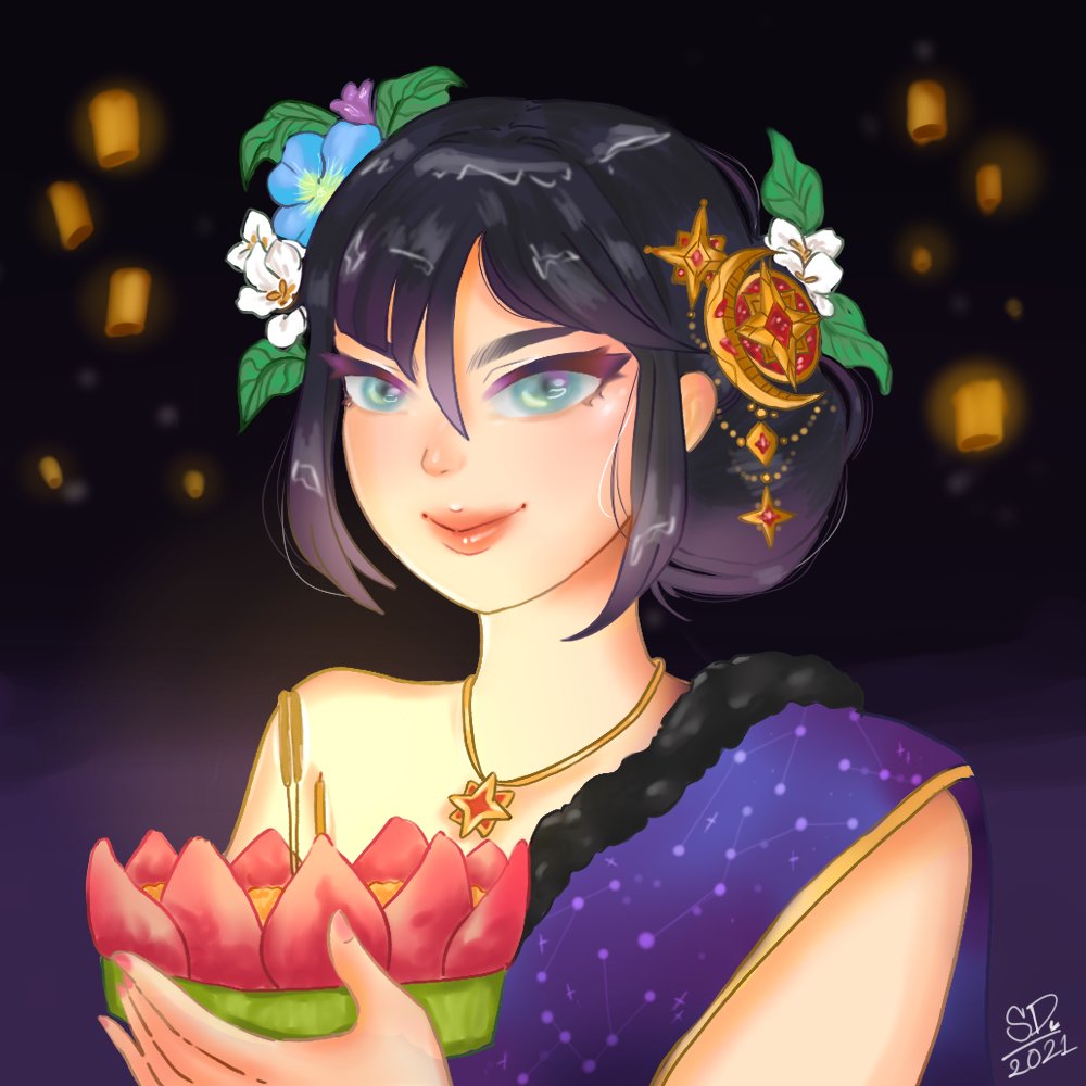 0 1 สุขสันต์วันลอยกระทง ( Loy Krathong Day)🌼✨ ลอยกระทงปีนี้ แอบซุ่มวาดงานนานพอสมควร เราได้นำตัวละคร Mona จาก Genshin Impact มาวาดและผสมประเพณีลงไปด้วยค้าบ💕 #ลอยกระทง64 #genshinimpactfanart #MonaMegistus 21/11/19 19:00