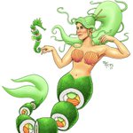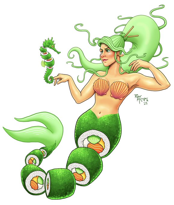 “Wasabi Mermaki” my #Mermay illustration from last year! Wondering if I should do another mermaid entry this year! This lovely lady is now an amazing holographic sticker, available in my shop (link in bio) #sushiart #mermay2021 #mermay2022