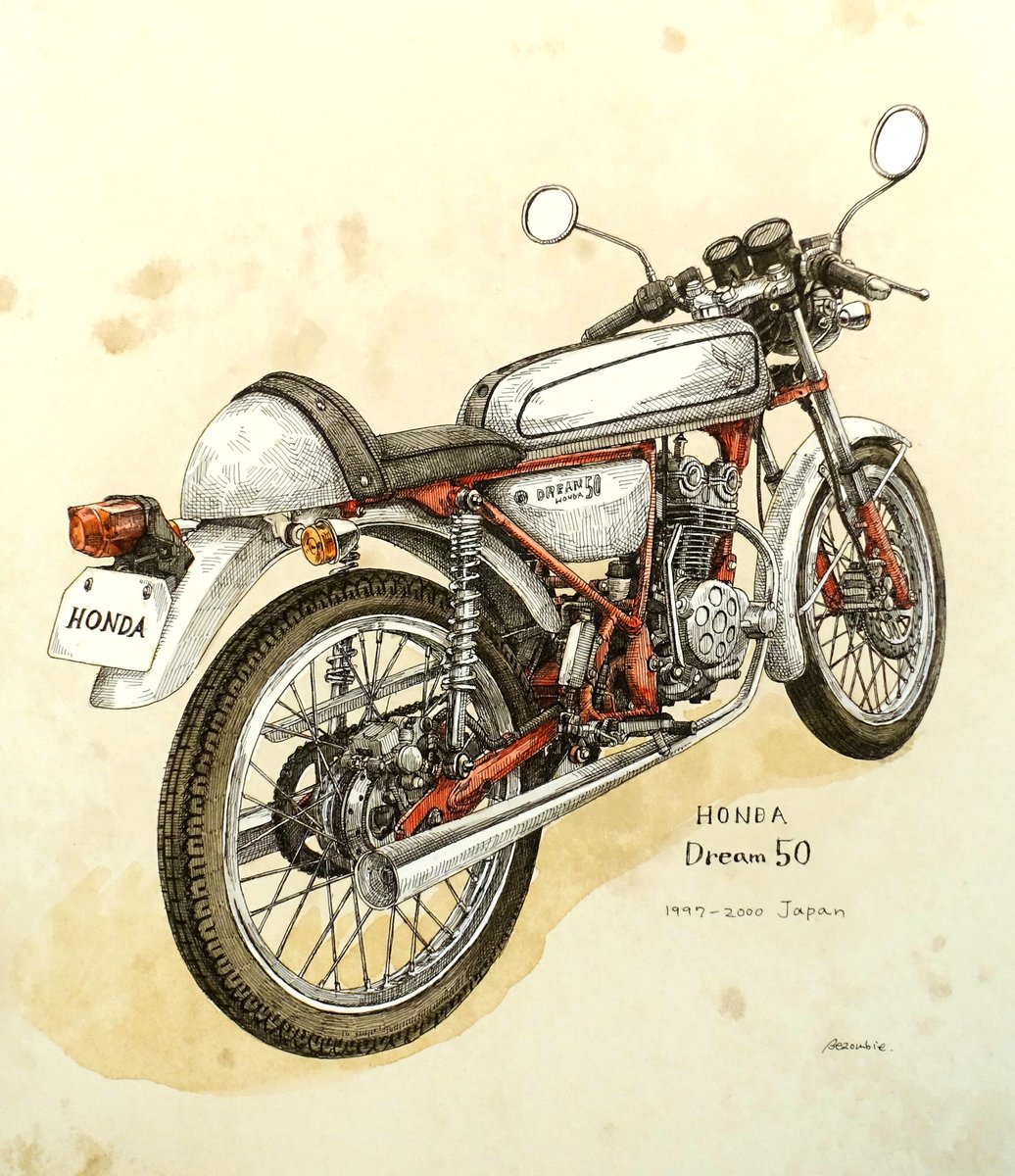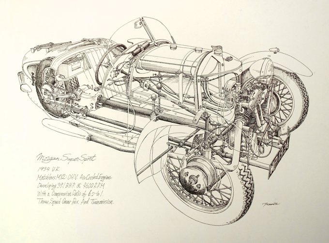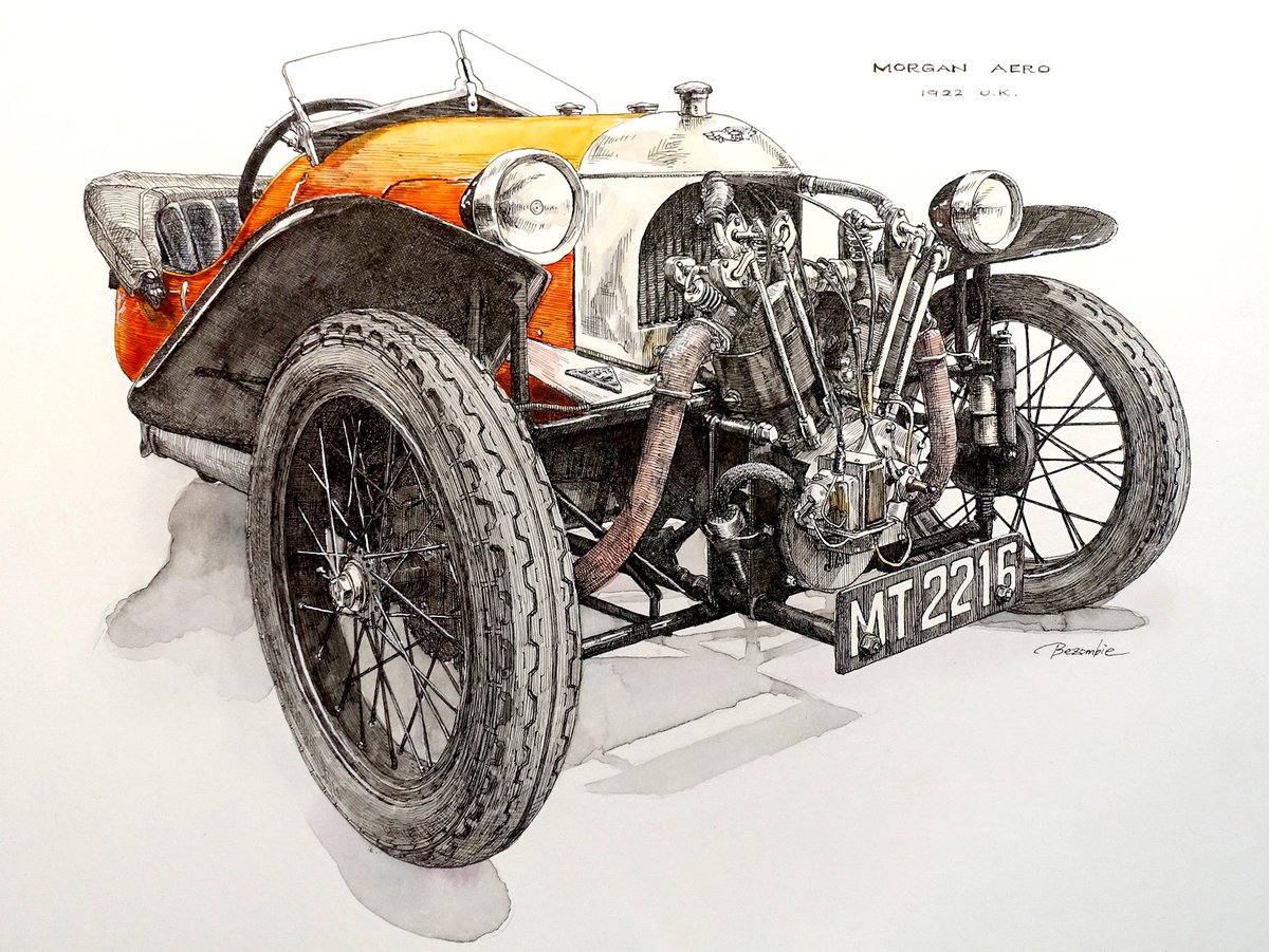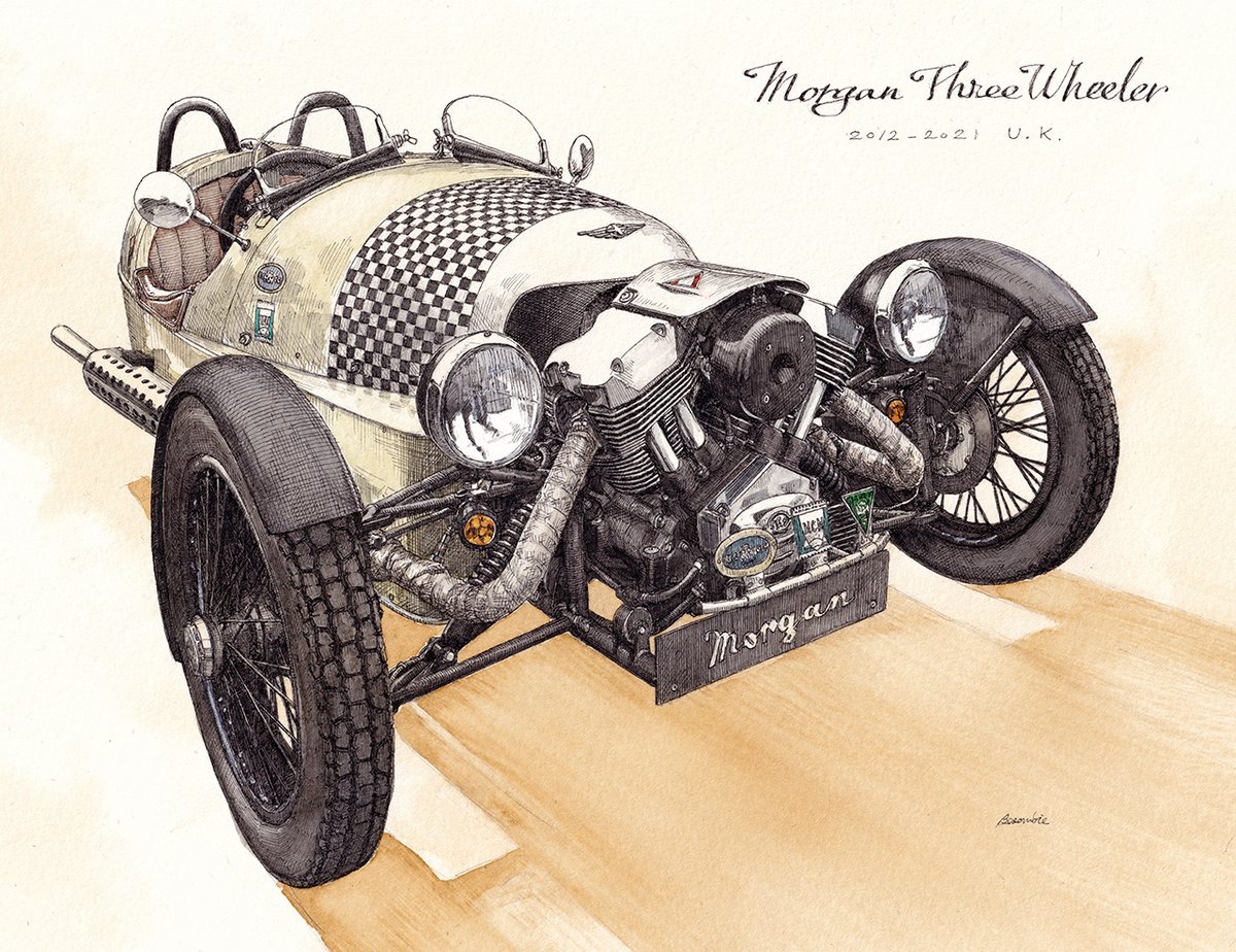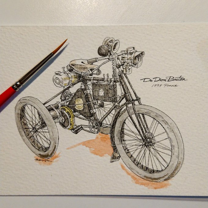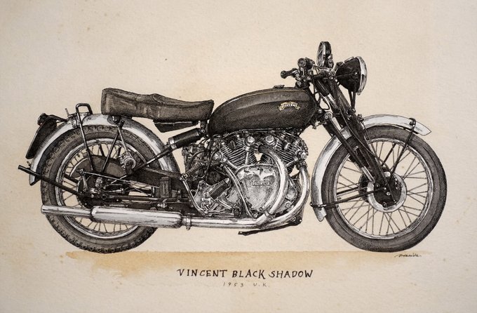 #フォロワー一万人以下の絵師が力作を投稿してたくさんのフォローを貰うタグ 線画の日の投稿で900人くらいフォロワーが増えたので、たまにはこういうのにも乗ってみようか。 製図ペンと水彩でクラシックカーとかクラシックバイク描いております。(頻度は低め)