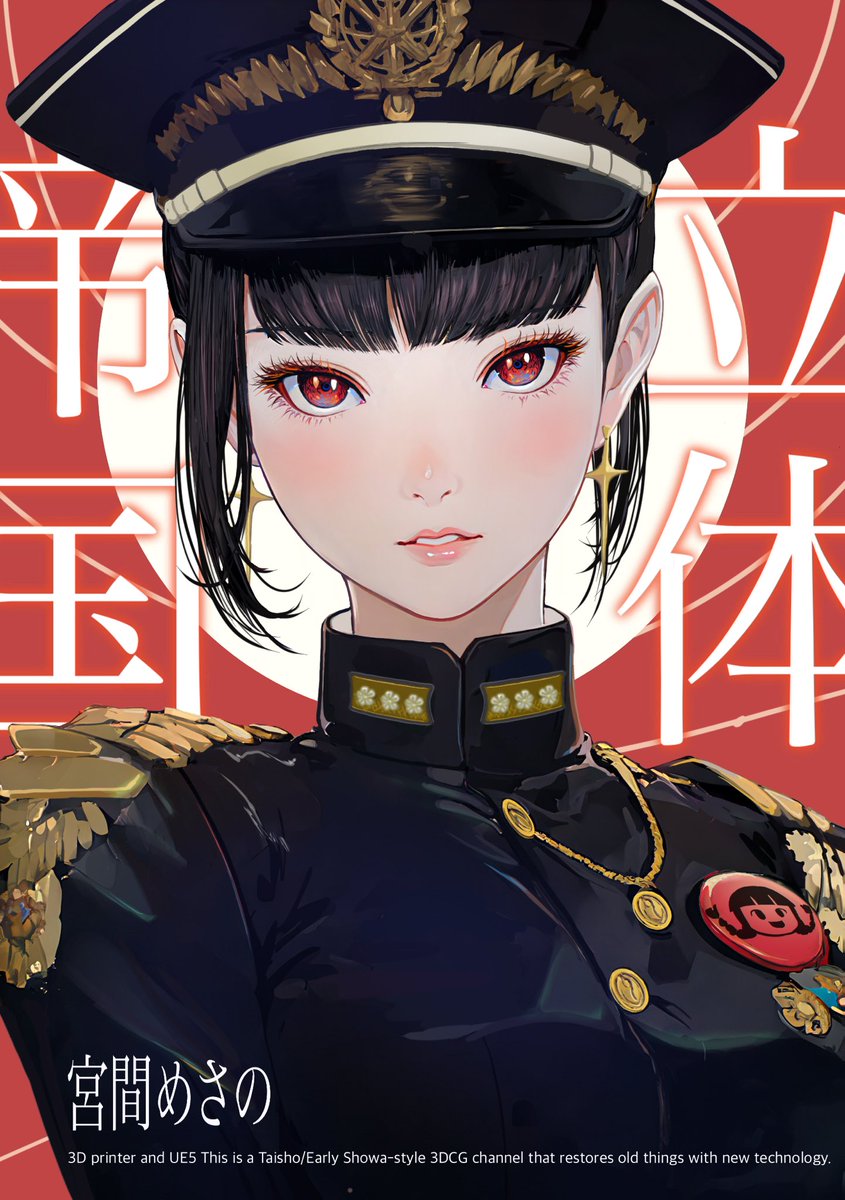 やっぱりオサゲも描かなくては!と思い軍服的デザインとメガネ有無で描きました。前回よりキリッとした正面顔!#宮間めさ絵