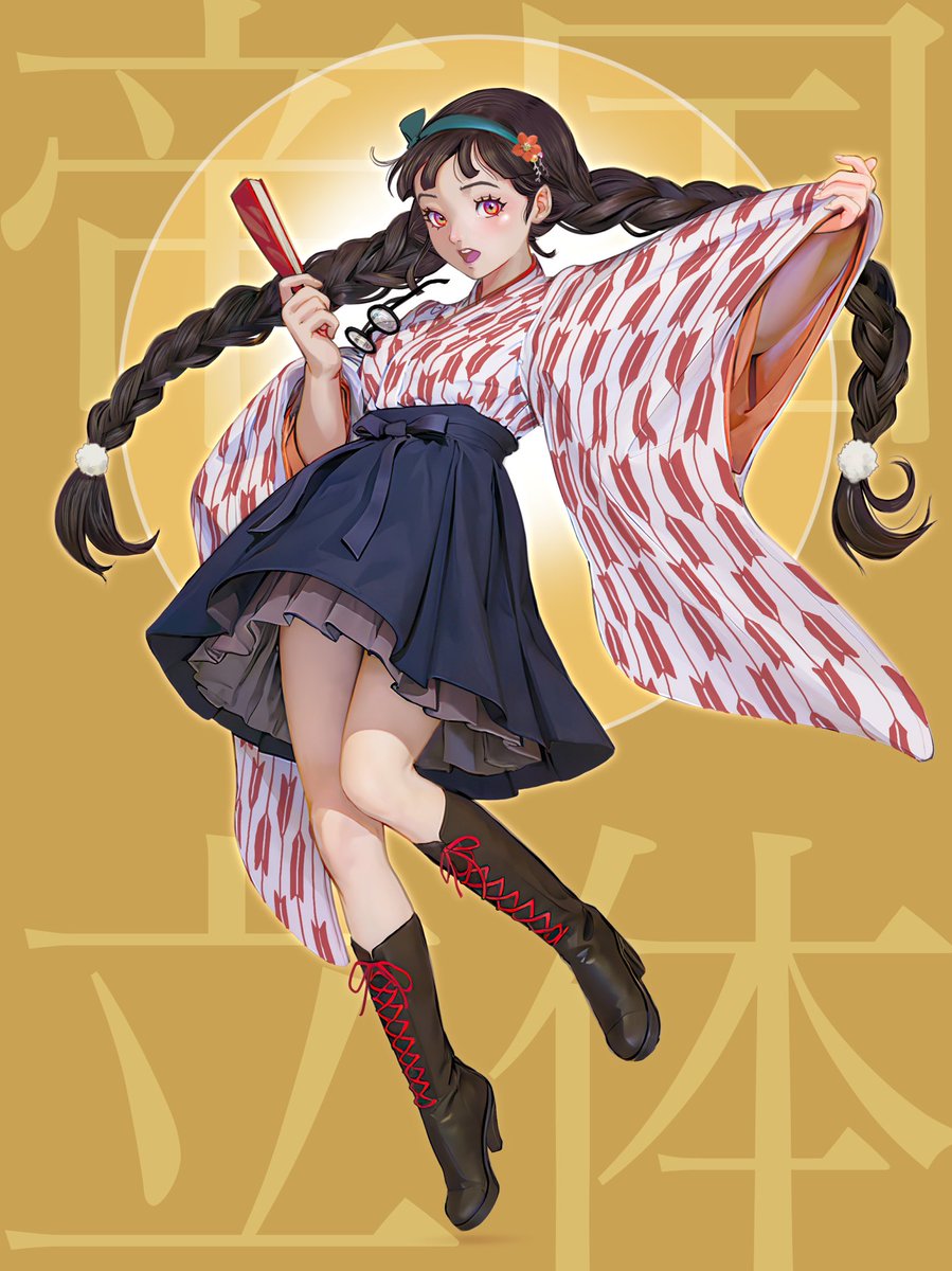 やっと完成。和装で描くとか言いつつ、袴はスカートになり、大和撫子って感じでは無く大きくジャンプ! ただ、ひたすらに描き込み続けました、とりあえず満足。 #宮間めさ絵 #宮間めさの #帝国立体