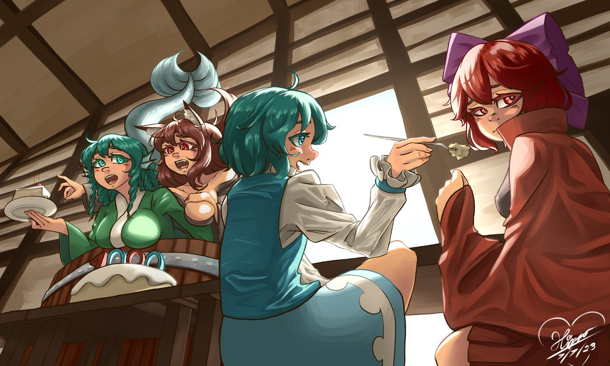 700!!!!!!!! I was a little late but thank you all!!! they enjoyed their cake together... #touhou #東方 #東方Project #touhouproject #illustration