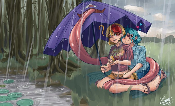Forgetful Maiden and Forgotten Umbrella commission by "you know who"... thank you again!! #touhou #東方 #東方Project #touhouproject #illustration