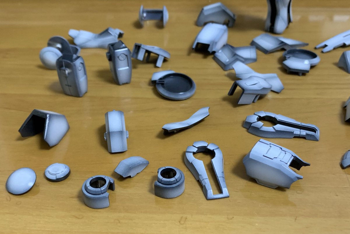2 4 MGエクシアリペアⅡ フレームグレー塗装中。今日中に一度立った状態まで進めたい #ガンプラ #エクシア 19/08/25 17:57