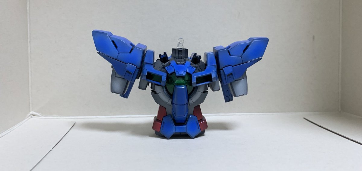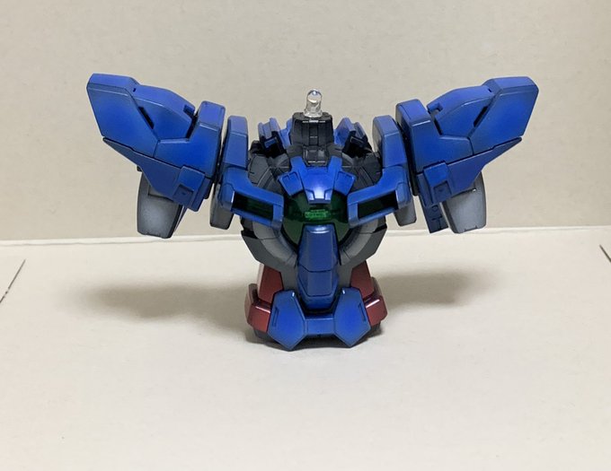 3 4 MGエクシアリペアⅡ ついに立った状態になりました! フレームのグレーは結局ベタ塗りに変更。顔も塗装した。顔のツノだけベタに近くなったから塗り直しとグレー部塗り忘れがあるから追加したい。 墨入れとデカール追加で完成 #ガンプラ #エクシア 19/09/08 01:14