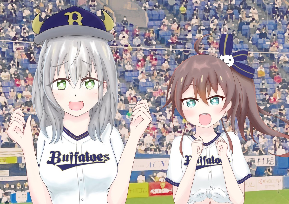 17 46 白銀ノエルさんと夏色まつりさんを描きました。 ホロパシフィックの時のスタメン発表めっちゃ可愛かったし、2人ともおりほー言ってくれたの嬉しかったからあっという間に好きになっちゃった オリックス担当がこの2人でよかった #ノエラート #祭絵 #イラスト 21/10/09 21:10