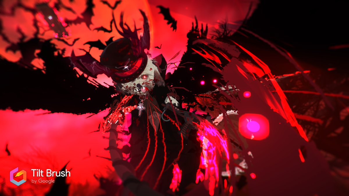 狂気ましましなベル・ドラキュリア このジャンルにやり過ぎという限界値はない! このベルさんでゾンビをバシバシ撃ち倒す爽快アクションゲームがあったらやりたい! #TiltBrush #digitalart #rkgk #Art_RT #絵描きさんと繋がりたい #犬好きさんと繋がりたい