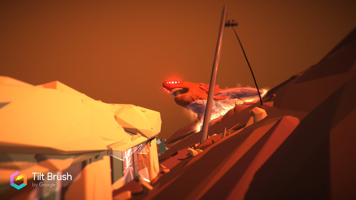 もうすんごい、武器持ち過ぎ! これでSearchBanくらったら砂漠を卑猥なものと認識しているという事だ! 背景やら小道具は作っているときりがありませんね。。 もっと荒廃させていこー。 #TiltBrush #VRArt #絵描きさんと繋がりたい #みんなで楽しむTwitter展覧会