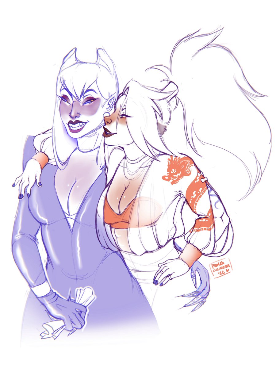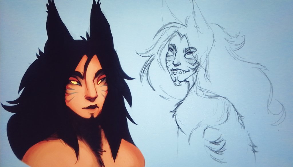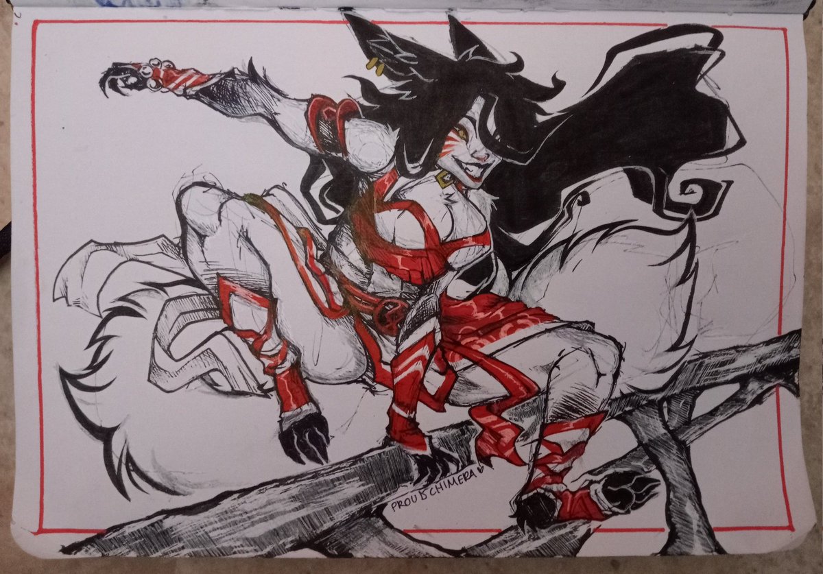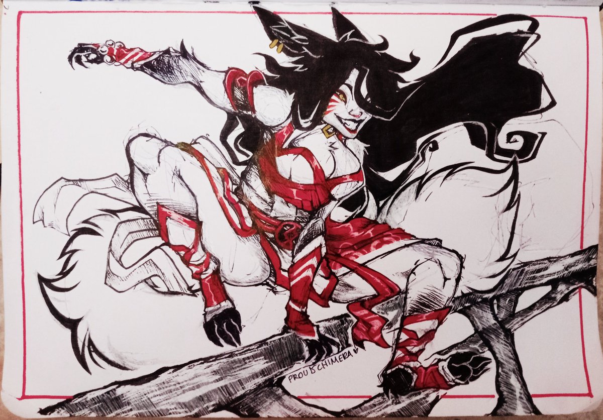 The Pup and Her Mother A very impulsive and rough sketch inspired by @Chertiloida_art 's amazing design for Young Ahri. Check It out!!! #Artoflegends #Ahri twitter.com/Chertiloida_ar…