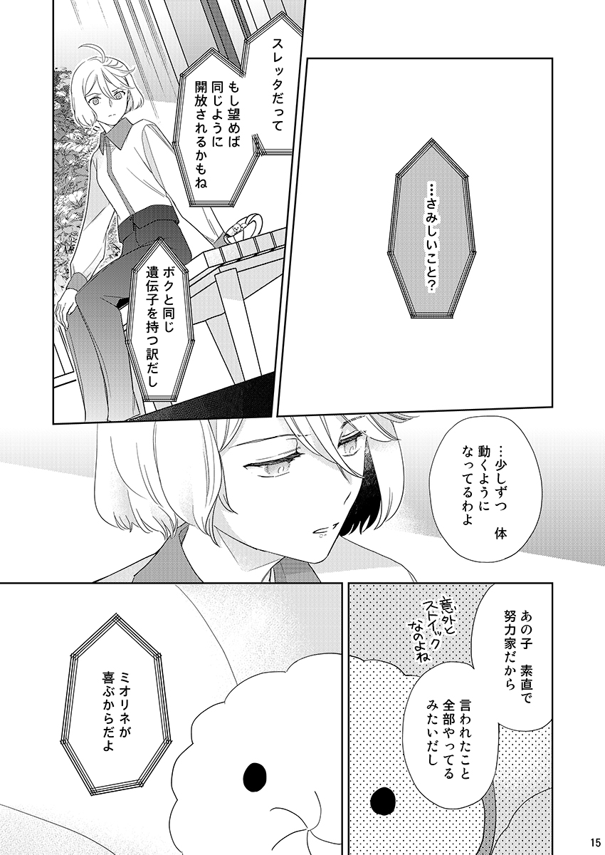 「Twinkle, Twinkle, Little Star」GLFes新刊スレミオ本サンプル 掃除中にミオリネのオルゴールを見つけて思い出に浸ったりキスをしたりするスレミオのお話です。シリアス寄りですがキスばっかりしています! メロンブックス/ melonbooks.co.jp/detail/detail.… 虎の穴/ページが出来たらリンク貼ります