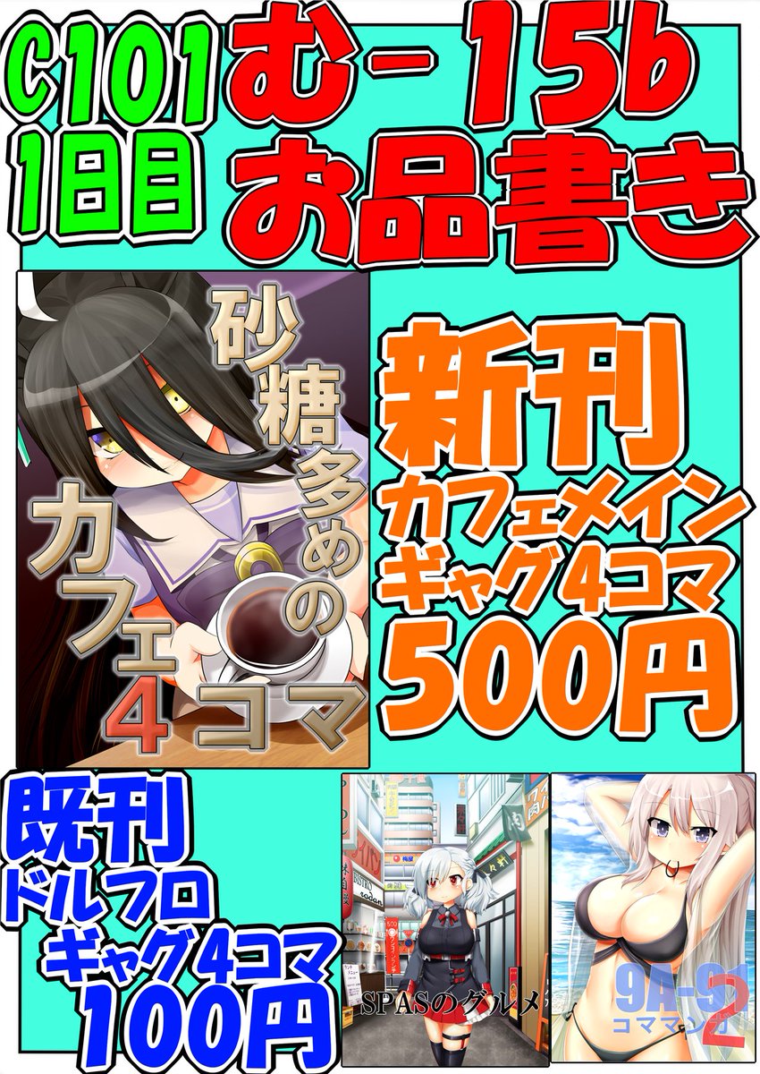 C101金曜日西むー15b「RDサービス」の新刊のお知らせになります。 マンハッタンカフェのギャグ4コマ漫画のまとめ+書き下ろしになります、どうぞよろしくお願いします。 メロンブックスさんの委託も予約開始しておりますのでこちらもどうぞ。melonbooks.co.jp/detail/detail.…