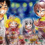 #2021年自分が選ぶ今年の1枚 色々描きましたが、この一枚ですね。これが私にとって初めて有償でご依頼をいただいたイラストでした。キャラ数の多さや構図をどうしようか相当悩みましたが、当時自分にあるものを全て注ぎ込んで描ききれたと思います。この時の初心をこれからも忘れずに参ります🍀